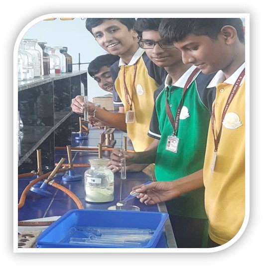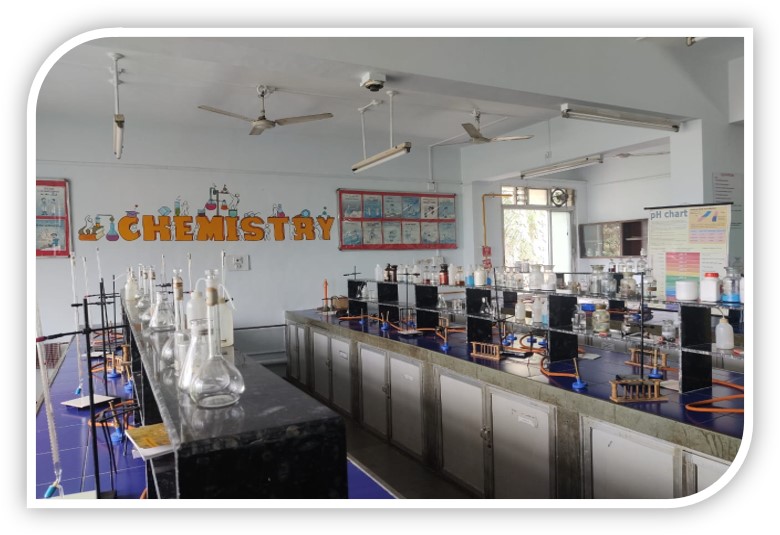 "Unleashing the power of elements, our dynamic Chemistry Lab offers students hands-on experience in mixing, analyzing, and exploring the fascinating world of chemical reactions ."