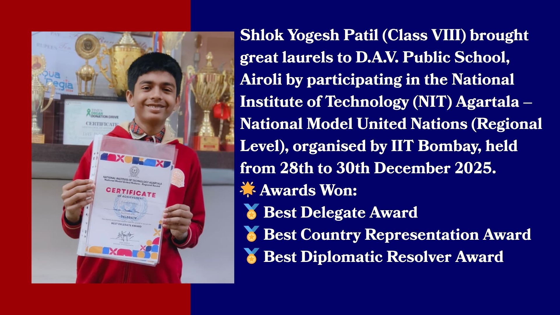 Congratulations to Shlok Yogesh Patil (Class VIII) Back to Achievement Page